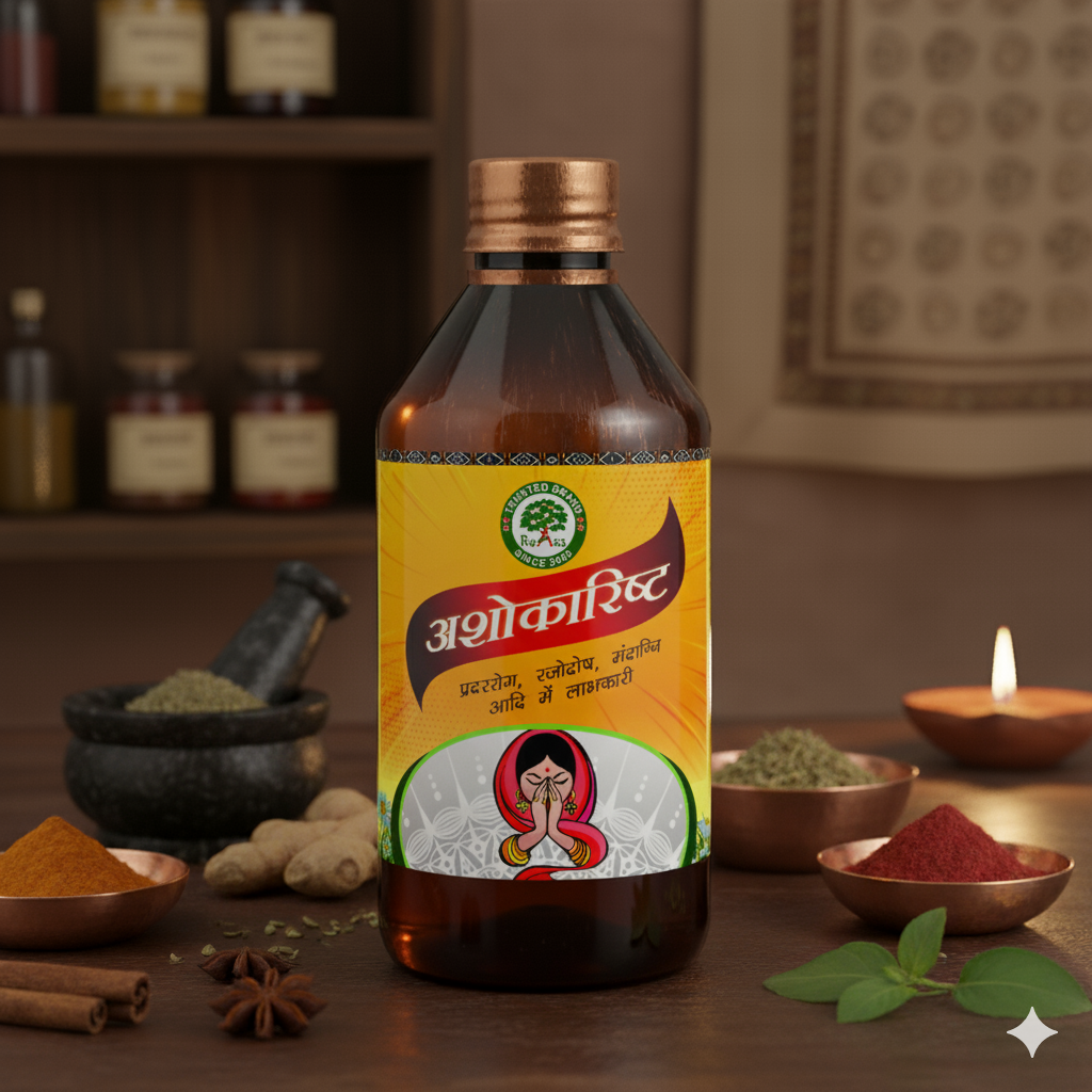 Ashokarishta is a revered Ayurvedic fermented tonic made with Ashoka bark (Saraca indica) and a blend of herbs like Lodhra, Musta, Haritaki, and Amla, formulated to support women’s reproductive wellness.