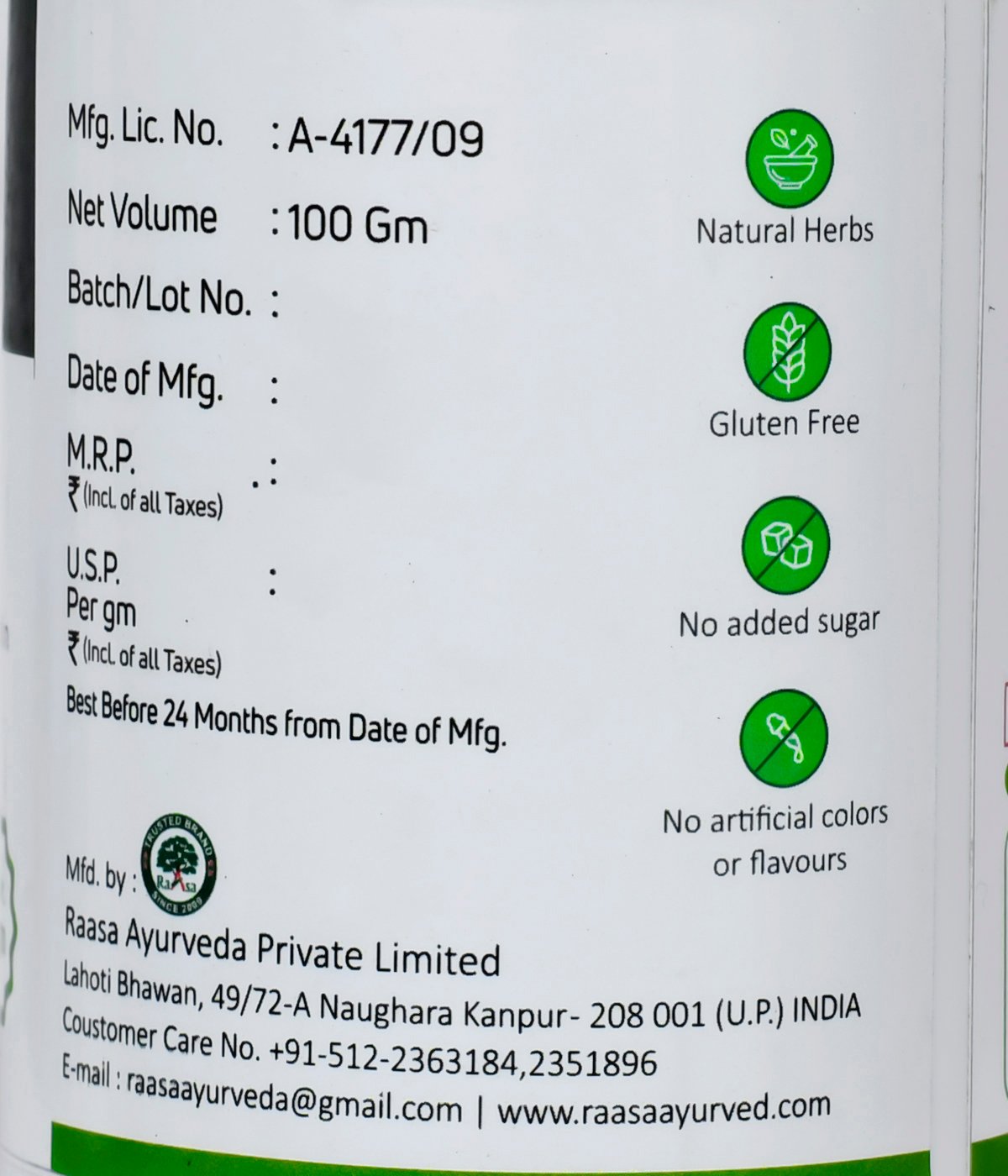 Chirata Churna is a potent bitter tonic made from Swertia chirata, traditionally used for managing fevers, liver disorders, and detoxification. It purifies the blood, strengthens immunity, and supports bile secretion and liver function.