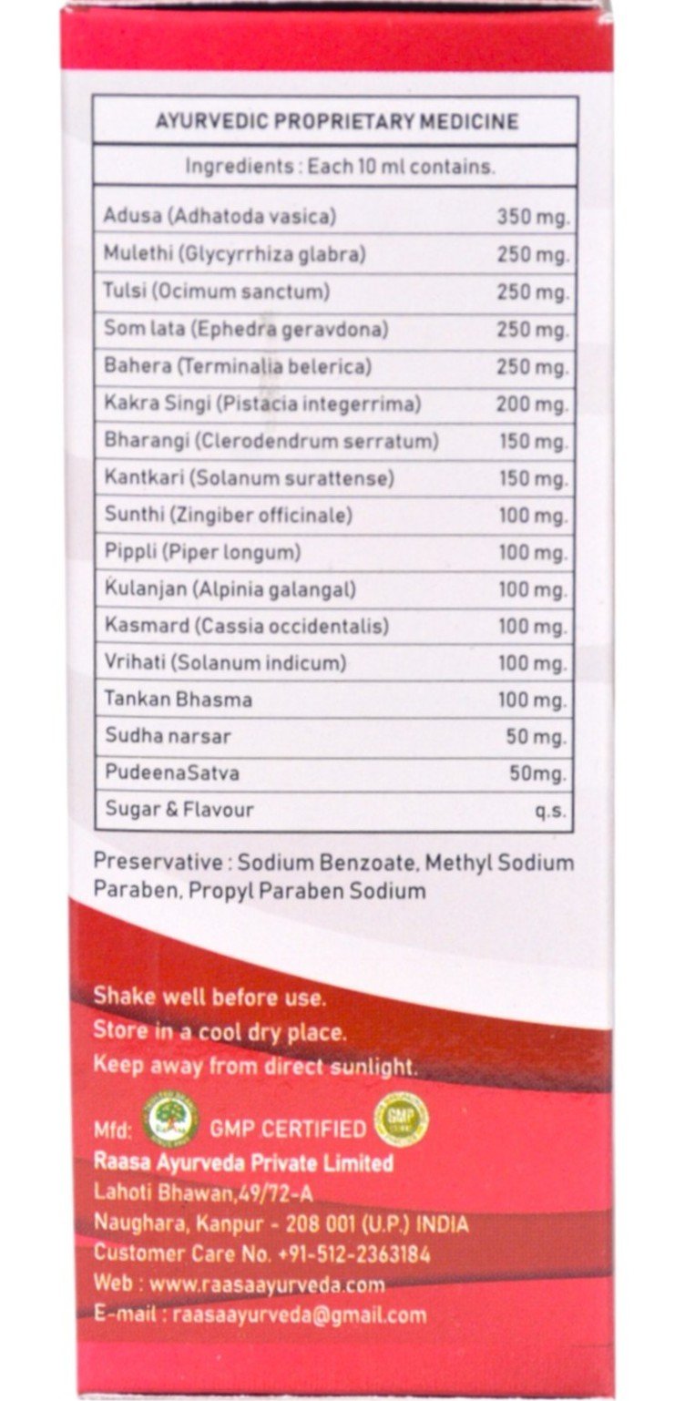Take Raasa Coughthro Syrup during a cold or cough to relieve irritation and soothe the throat.