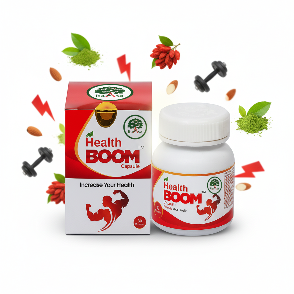 Recharge your body and boost your vitality with Raasa Healthboom Capsules, a potent Ayurvedic dietary supplement designed to enhance overall health, stamina, and metabolic function.