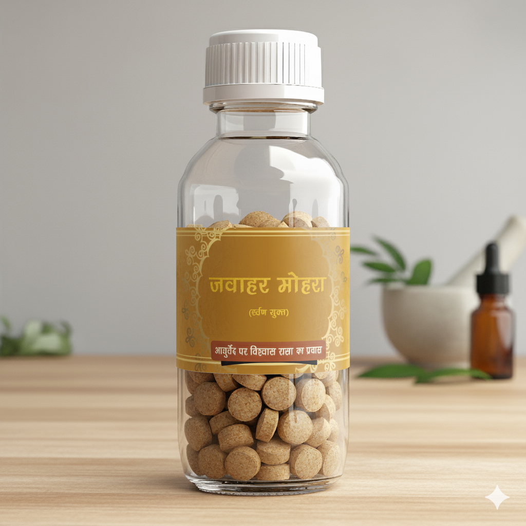 Jawahar Mohra (S.Y.) is a traditional Ayurvedic preparation combining minerals and herbs to support systemic immunity, vitality, detoxification and deep tissue renewal.