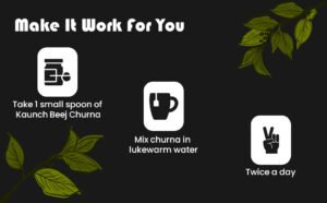 Kaunch Beej Churna is made from purified seeds of Mucuna pruriens, used traditionally to enhance vitality, improve reproductive health, and support nerve function. It is a natural aphrodisiac and dopamine booster for energy and mental alertness.