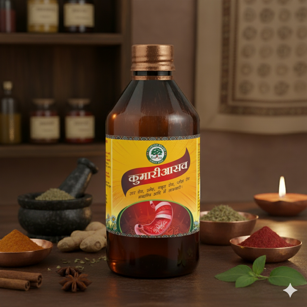 Kumari Asava (also spelled Kumaryasava) is a time-honored Ayurvedic fermented tonic centered on Aloe Vera (Kumari), enriched with a blend of herbs like Haritaki, Pushkarmool, Jatiphala, and traditional bhasmas.