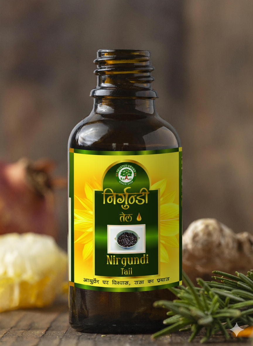 Nirgundi Taila is a medicated oil based primarily on Nirgundi (Vitex negundo) and allied herbs. It is traditionally used for back-pain, spine-related discomfort, joint pain, and Vata/Kapha alignment.