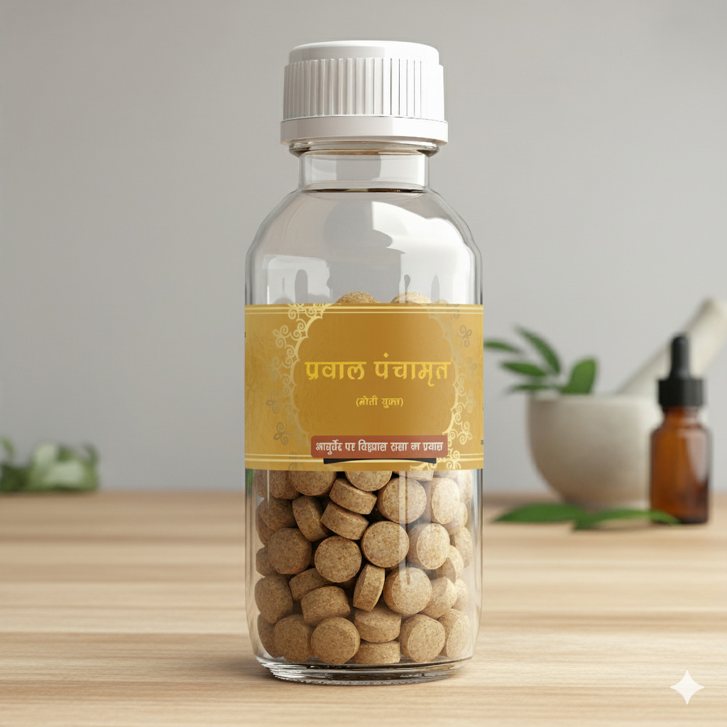 Prawal Panchamrit Ras is a fortified Ayurvedic mineral-herbal formula based on coral (Prawal) and other rejuvenative herb and mineral blends.