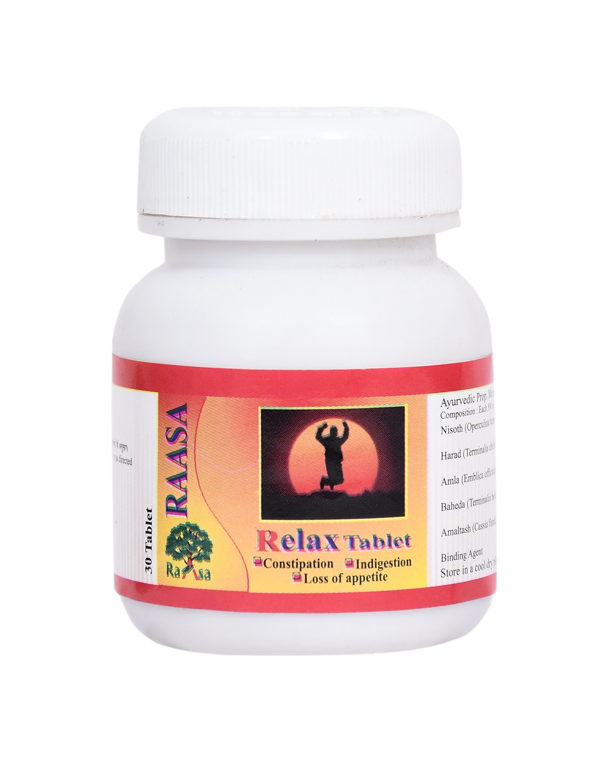 Say goodbye to digestive discomfort with Raasa Relax Tablet, a powerful Ayurvedic formulation designed to promote a healthy digestive system. Crafted with trusted ingredients like Harad, Nisoth, Awala, Baheda & Amaltash, this supplement naturally aids in relieving acidity, constipation, flatulence, and indigestion.