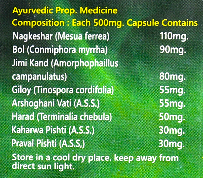 Raasa Pile Capsule is a specially formulated Ayurvedic remedy designed to provide effective relief from haemorrhoids (piles) and associated symptoms such as bleeding, swelling, burning pain, itching, and constipation. Crafted with powerful natural ingredients like Naagkeshar, Bol, Jimi Kand, and Giloy, this herbal supplement not only helps in shrinking the piles mass but also promotes the healing of anorectal tissues. Regular use may help regulate bowel movements, reduce bloating, and support the overall health of the rectal region, offering a natural, gentle solution to one of the most common health discomforts.