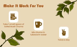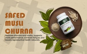 Safed Musli Churna is a powerful Ayurvedic adaptogen for restoring stamina, boosting immunity, and improving reproductive health. It supports hormonal balance, combats fatigue, and enhances vitality in men and women.